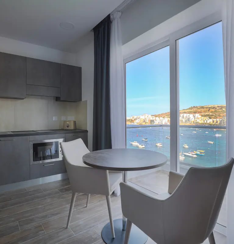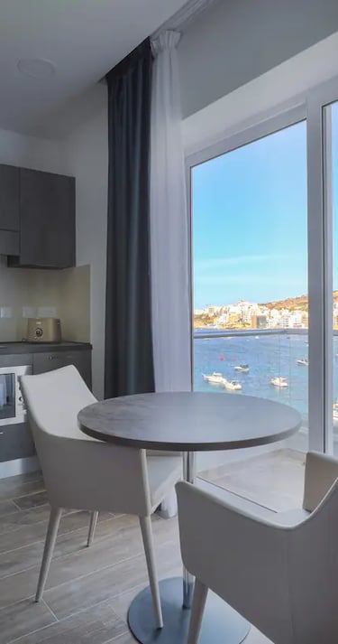 Enjoy breathtaking views of the Mediterranean Sea from this spacious room, featuring modern amenities, a cozy atmosphere, and easy access to nearby beaches and local attractions in the Maltese Islands.