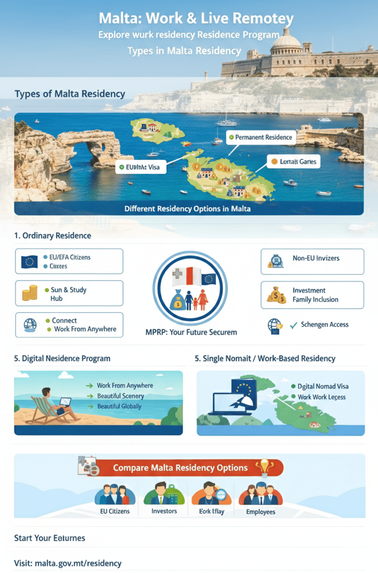 "Malta Residency Guide 2026: Discover all residency options, including investment, work permits, and nomad visas. Our complete guide helps you start today!"